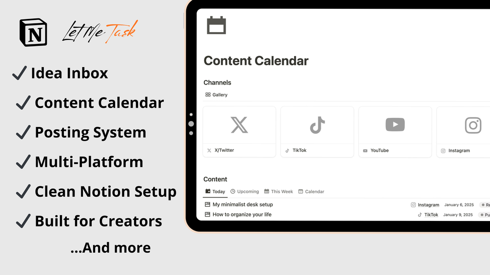 A simple Notion content system that helps you organize your ideas, plan your posts, and stay consistent across all platforms without stress.